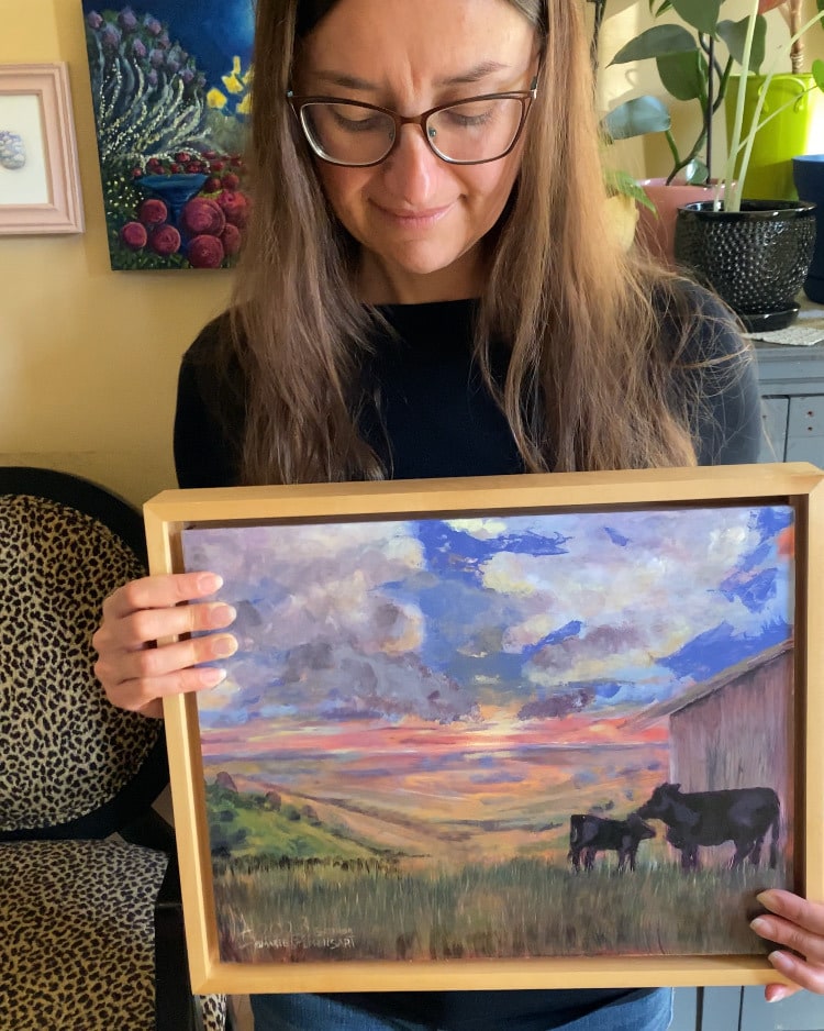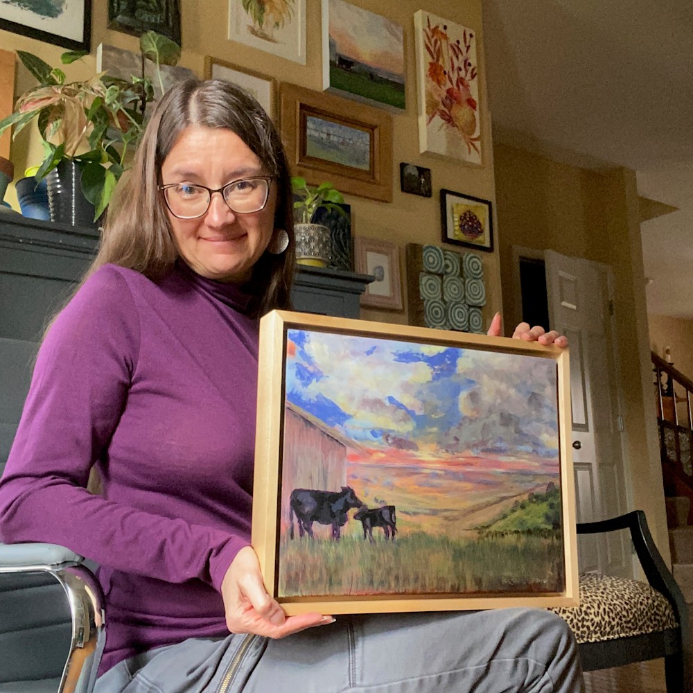 What I wrote for social media and my email list on November 27th in hopes to sell it on Giving Tuesday 11/28/2023 "On November 12, I had the honor to share my original Iowa Farm Scene Painting with nearly 200 art enthusiasts alongside over 100 original paintings donated by local artists and private collectors donated , all to help support the Figge Art Museum.