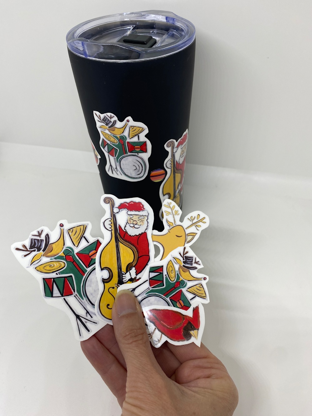 This festive sticker features my Drummer Rudolph the Red Nosed Reindeer, original window painting at the Hotel Blackhawk,  from this year’s Deck the Downtowns Holiday Window Display Challenge—now you can take a piece of the painted windows home with you! Perfect for decorating mugs, laptops, or gifts.